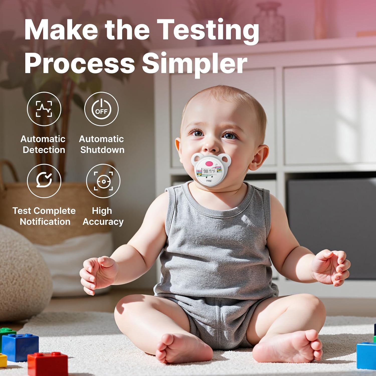 High Accuracy Thermometer LCD Display Nipple-Shaped Pacifier Babies's Heating Fever Monitor Gauge Pink/Blue Digital for Baby Oral Mouth Temperature Measuring Nipple