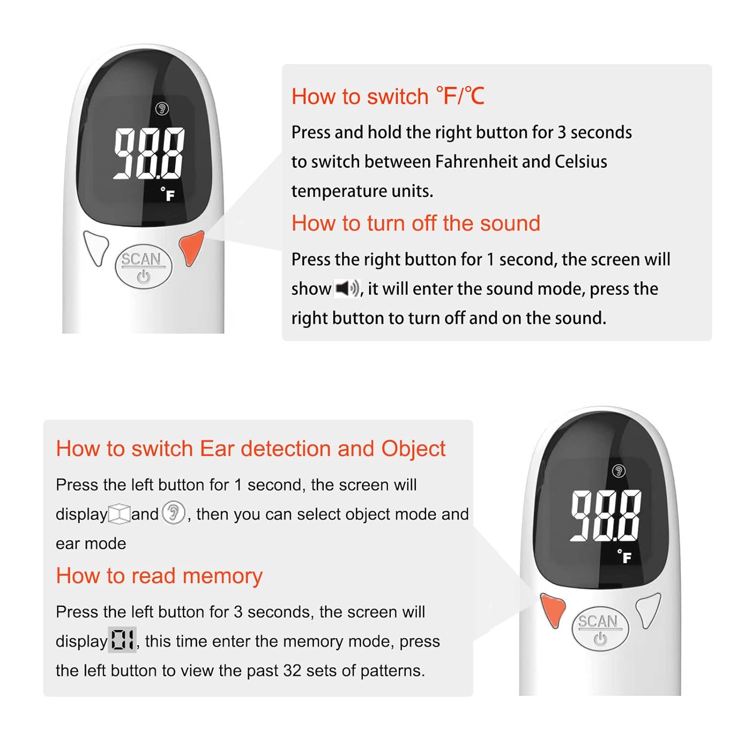- It is recommended to use indoors, non-contact thermometers are subject to many environmental factors, avoid windy and high or low temperatures for use, which can affect the accuracy of the thermometer.