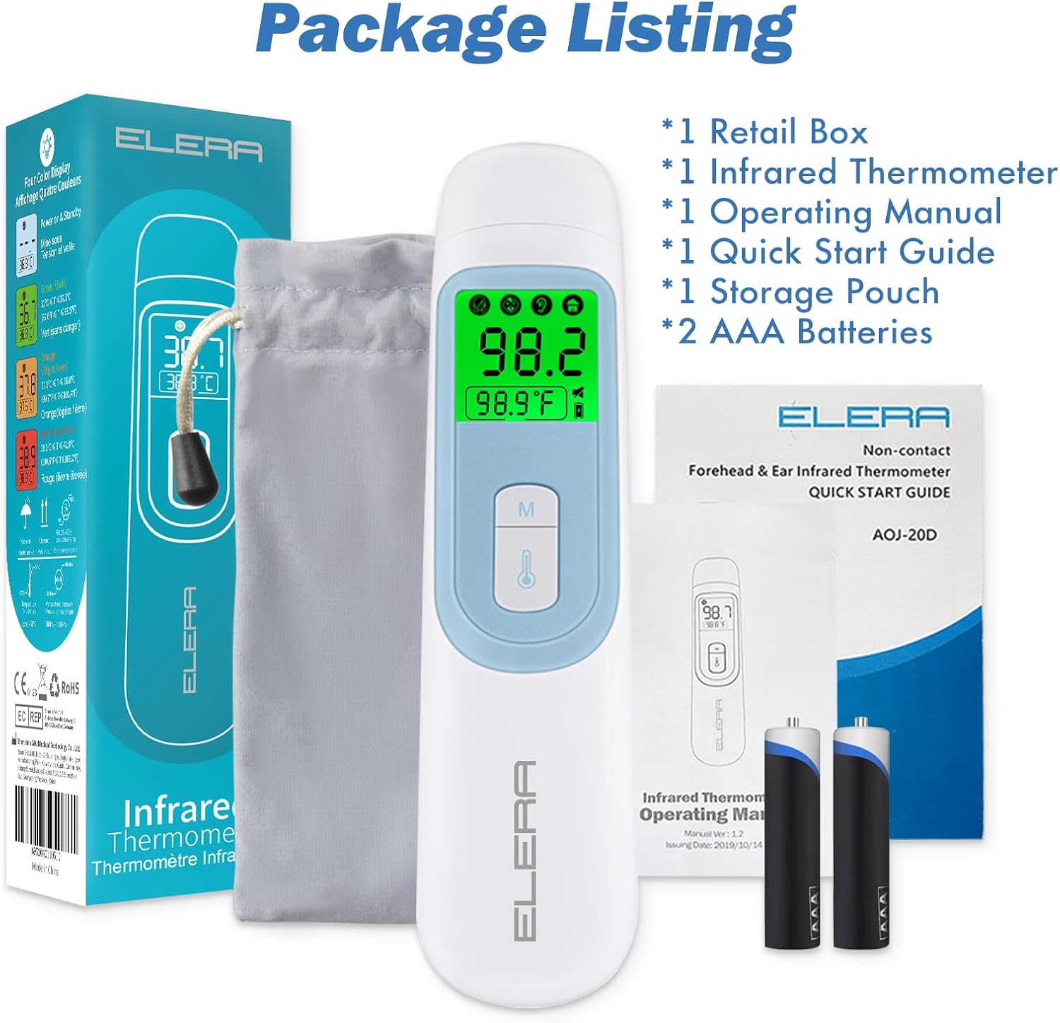 Ear Thermometer for Baby, ELERA Infrared LCD Thermometer with Automatic Switc…