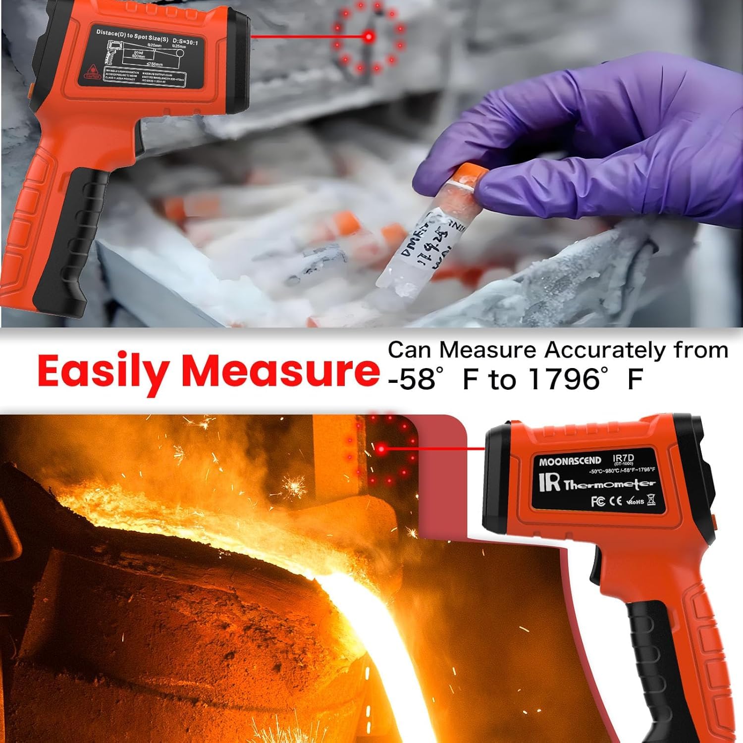 The infrared thermometer emits circular infrared light, which can help you locate the target and greatly improve the measurement accuracy.
