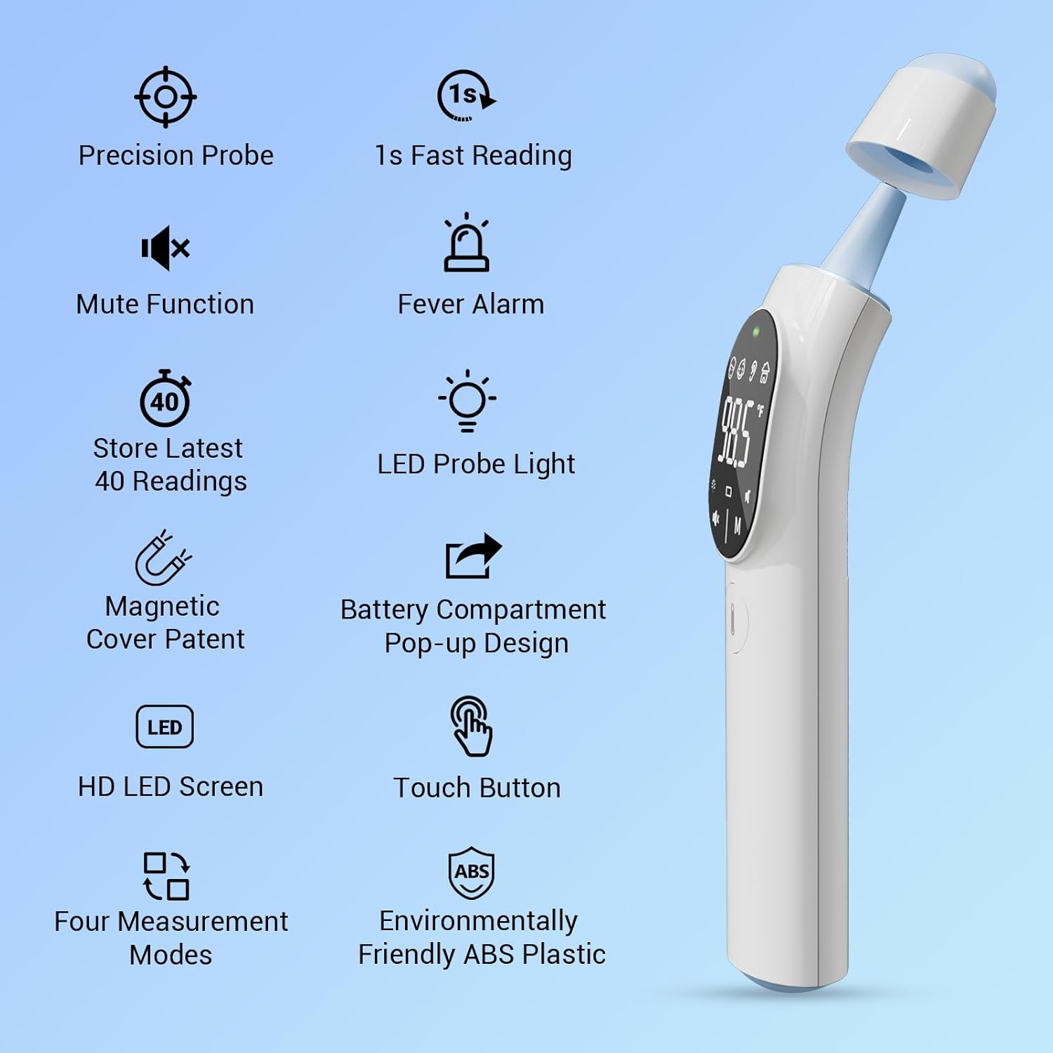 Dual Mode Thermometer for Adults, Kids, and Babies – Infrared Digital Forehead and Ear Thermometer, No Touch with Fever Alarm and Fast Results